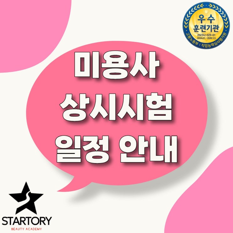 원주미용학원 스타토리뷰티아카데미에서 한 번에 준비하세요! 안녕하세요 원주미용학원 스타토리뷰티아카데미입니다! 미용 국가자격증을 준비하고 계신가요? 헤어·피부·네일·메이크업 미용사 자격증은 상시 기능사 시험으로 운영되기 때문에, 내 일정에 맞춰 시험을 볼 수 있다는 큰 장점이 있습니다. 오늘은 원주미용학원 스타토리뷰티아카데미에서 2026년 미용사 상시 기능사 필기·실기 시험 일정과 자격증 준비 방법까지 한 번에 정리해 드릴게요! 2026년 미용사 상시 기능사 시험이란? 미용사(일반/피부/네일/메이크업) 기능사 시험은 한국산업인력공단(Q-Net)에서 주관하는 상시 검정 시험입니다. ✔ 정해진 연 1~2회 시험 ❌....... <img src="https://blogthumb.pstatic.net/MjAyNjAxMDlfMTMy/MDAxNzY3OTMwMTExMTIz.zKD2vbZsu9z9KBbUMzghzeP8h7zISFoxc5deTP4yBdUg.SwWF_xj9mjkQIY1h8mMHuehh1SsreQUQd_iiPyOq3AUg.JPEG/%C1%A6%B8%F1%C0%BB_%C0%D4%B7%C2%C7%D8%C1%D6%BC%BC%BF%E4._%2838%29.jpg?type=s3" />