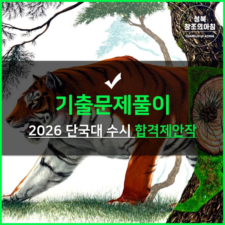 안녕하세요. 기초디자인 전문 미술학원 성북창조의아침입니다. 모두들 추석 연휴 잘 보내고 계시는지요? 성북창조의아침에서 전해드리는 합격 제안작 소식입니다. 2026 단국대 수시 주제를 풀어보았는데요. 단국대 미대는 천안캠, 죽전캠에 위치해있습니다. 그중에 도예과 수시 주제입니다. 2026 단국대 도예과 수시 주제 단국대는 기초디자인을 보는 학교로 3절 5시간 시험을 보고 도예과는 죽전캠에 위치해있습니다. 올해 수시 기초디자인 주제로는 호랑이, 소나무가 있는 전경이 출제되었습니다. 소나무가 있는 전경이라는 풍경이 출제되었는데요. 기초디자인에서는 요즘 우주, 바다 등의 물체를 건너뛴 시공간이 많이 출제가 되는 편입니다. ....... <img src="https://blogthumb.pstatic.net/MjAyNjAyMTNfMTgz/MDAxNzcwOTY5MjYzMDQ2.EY7YDb23uUbi3V3f7e-rnkAf37yec9LMkSYtttKs51Ig.AupeTEtXvdwAmG1gR3f69F9B3twKFYcrW3PVavWbyI4g.JPEG/2026_%B4%DC%B1%B9%B4%EB_%BC%F6%BD%C3_%C7%D5%B0%DD%C1%A6%BE%C8%C0%DB_%2814%29.jpg?type=s3" />