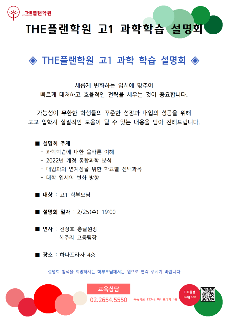 안녕하세요. 국어 5등급을 전교 1등으로 만든, 성적 향상 신화 한정아국어전문학원 원장 한정아입니다. 어느덧 2월, 개학이 코앞이네요. 지금이 유일하게 고등 3년의 ‘방향’ 잡을 수 있는 시간입니다. 3월이 되면요? 고1은 순식간에 바빠집니다. 문제는, 바쁜데 남는 게 없는 바쁨이 시작된다는 겁니다. 뭔가 다양한 과제들을 제출은 했는데 세특은 밋밋하고, 밤새 했는데 기록은 “성실히 수행함” 한 줄로 끝나고, 그렇게 1학기가 통째로 지나갑니다. 그래서 3월 전에 딱 1시간, “무엇을 남기고, 무엇을 버릴지”를 먼저 정리하는 [고1 생기부 전략 설명회]를 엽니다. ✅ 이번은 앵콜 설명회입니다. 지난 설명회가 빨리 마감됐고, 끝나고 가....... <img src="https://blogthumb.pstatic.net/MjAyNjAyMTBfMjY0/MDAxNzcwNjkyNDg4NjY0.MaIuPFjLKNBUab4OIRYavQmPHEHnIGfcPiV9bYd3at4g.9p3m-HGDsSu-T75p1hak1hPgOCcetmEU-Nwfh7UL-ocg.PNG/%C1%A6%B8%F1%C0%BB-%C0%D4%B7%C2%C7%D8%C1%D6%BC%BC%BF%E4_-001_%285%29.png?type=s3" />