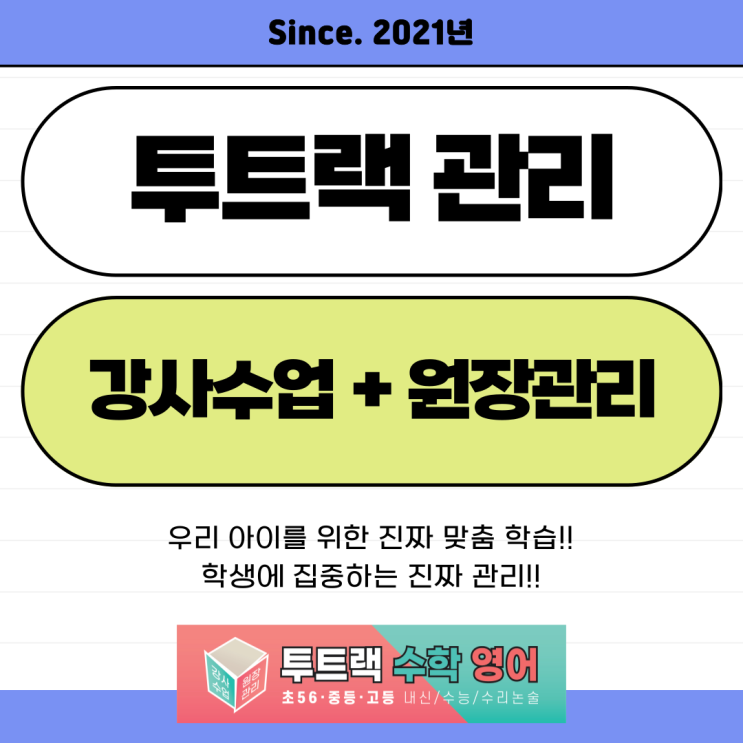 우리 투트랙 학원은 학생에 집중하며, 면학 분위기 조성과 학생 동기 부여를 위해 최선을 다합니다. 1. 출결 관리 2. 학원 생활 관리 3. 학원 보강 관리 진심을 다해 우리 아이에게 집중하고, 한 명 한 명 최선을 다해 지도하겠습니다. <img src="https://blogthumb.pstatic.net/MjAyNjAyMjhfMTc3/MDAxNzcyMjY5Mzg0MTk2.Qj4e4F-ZUb9MmlssFLkWRflaTNpyBDmJePtGqbiB7DYg.5dwLoaeWjRN3b12TG61Ea0sNUd0YqFzNvhLoYWIxk7Ig.PNG/%C5%F5%C6%AE%B7%A2%C0%B8%B7%CE-%BE%D5%BC%AD%B0%A3%B4%D9-001.png?type=s3" />