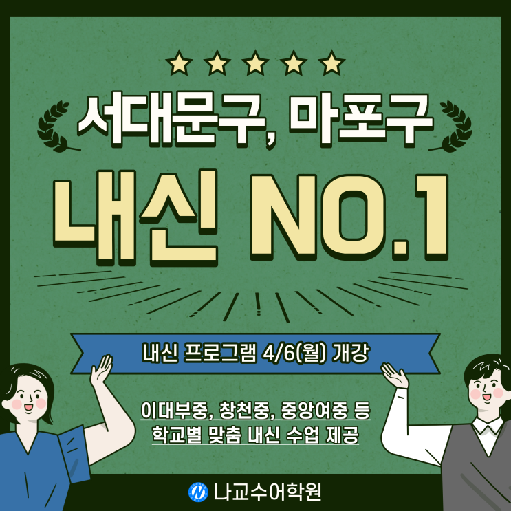 [나교수어학원] 중등 영어 만점자 87명 배출! / 서대문구, 마포구 중등 내신 완벽 대비 / 이대부중, 창천중, 중앙여중, 아현중, 서울여중 등 학교별 맞춤 내신 수업 제공
