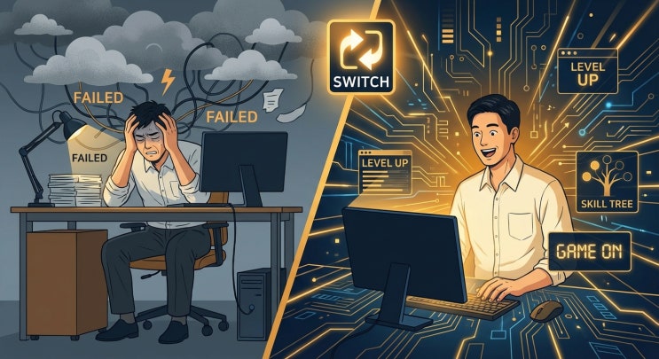 지옥 같던 시험공부를 ‘가장 즐거운 게임’으로 바꾼 단 하나의 스위치 진급 시험을 앞둔 직장인의 하루는 ‘스트레스의 연속’입니다. 출근길에는 어젯밤 외웠지만 벌써 가물가물한 개념들 때문에 초조해지고, 업무 중에는 산더미 같은 일과 책상 위 수험서 사이에서 갈등합니다. 퇴근 후 지친 몸을 이끌고 책상에 앉아보지만, 머릿속은 온갖 잡생각으로 소란스럽습니다. 꾸역꾸역 내용을 밀어 넣는 암기는 밑 빠진 독에 물 붓기 같고, 돌아서면 잊어버리는 자신에게 ‘짜증’이 치밀어 오릅니다. 여기, 우리와 너무나도 닮은 한 평범한 직장인이 있습니다. 그 역시 진급 시험이라는 현실의 벽 앞에서 ‘고통스러운 암기’와 ‘끝없는 잡념’에....... <img src="https://blogthumb.pstatic.net/MjAyNjAxMTlfNzQg/MDAxNzY4ODExODkxMTM5.3t_W_nOZ_7RBI39fSo4Dvh04hD3Ns4nebd0JLzYo2nog.F3EZc17NSLUR8o6WJLtToYYHcKXYbudfJbVMB7j5NdEg.JPEG/Generated_Image_January_19%2C_2026_-_5_26PM.jpeg?type=s3" />