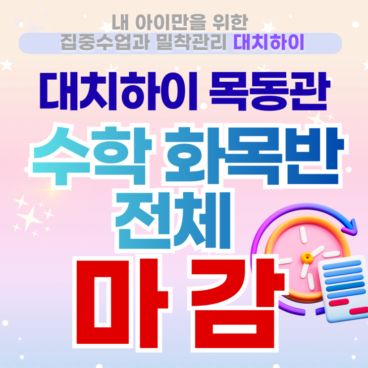양동중수학학원 등촌중수학학원 백석중수학 양화초수학학원 등촌초수학학원 백석초수학학원 양동중내신 양화초영어 양동중영어수학 대치아히목동관 양동중수학학원 등촌중수학학원 백석중수학 양화초수학학원 등촌초수학학원 백석초수학학원 양동중내신 양화초영어 양동중영어수학 대치아히목동관 대치하이학원 2관 목동관 대치하이목동관 수학 중요 공지사항 안녕하세요, 대치하이목동관입니다. 현재 수학 화목반은 전체 마감되었습니다. 1:1 개별진도로 수업을 진행하다 보니 각 학생에게 충분한 시간과 관심을 쏟기 위해 정해진 인원만 받고 있습니다. 화목반을 고려하셨던 학부모님들께는 양해 말씀 드립니다. 월수반은 현재 등록가능하오니....... <img src="https://blogthumb.pstatic.net/MjAyNjAxMTlfNzcg/MDAxNzY4ODA3ODgwNjgx.2mCHXFyJyr9vzXlMYWzzwl6sbYL6Lw9oBDjjv8x0Jagg.YO201p04DF3FLyjmoynj9XCCen3RGRW230vxR-D95swg.PNG/1.png?type=s3" />