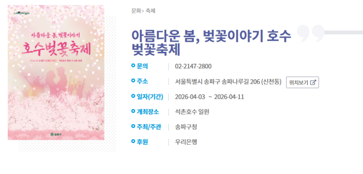 2026년 석촌호수 벚꽃축제 가수 거미온다