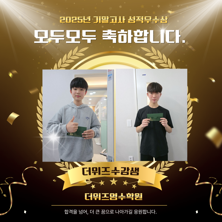 장유영어학원 "성적이 진짜 올랐어요" 아이들 찐후기와 함께하는 2025 기말고사 성적우수상 시상식 - 더위즈영수학원