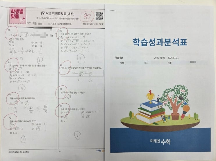 김해[대청중][능동중][장유중]교과 수학 성적 향상의 핵심, 맞춤 교재 실제 결과