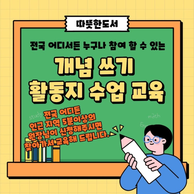 따뜻한도서 개념 쓰기 활동지 활용 방법및 교수법 교육~ 전국 어디든 우리 학원만의 특별한 교과 수업을 원하시는 원장님들 참여해주세요~^^ 20년 현장 경험의 따뜻한도서가 직접만든 개념 쓰기 활동지로 우리학원만의 특별한 수업을 원하시는 인근지역 5분의 원장님들이 모이시면 어디든 찾아갑니다~ 활동지 공유및 활용 방법/교수법까지 공유해드립니다~ 궁금하신 원장님들 언제든 연락주세요~ 그리고 따뜻한도서 가입후 활용이 되지않아 사용하고있지 못하시는 원장님들도 연락주세요~~ #따뜻한도서 #찾아가는교육 #개념쓰기수업 #개념쓰기활동지 <img src="https://blogthumb.pstatic.net/MjAyNjA0MjVfMTUg/MDAxNzc3MTIyMzE0OTg0.yFCgLRBjTTZZYG_EcG_YHyM2QXyelBIm8HXLoliPMakg.4lJyF_ZCuexgrdf8fyo4NpFVCVtnDjMuD-DE1siOCPog.JPEG/900_1777121144874.jpg?type=s3" />