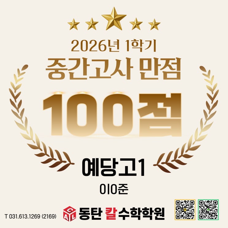[동탄능동수학학원]2026년 1학기 중간고사, 결과로 증명하는 동탄 에듀 스터디온의 저력! (만점 및 90점 이상 다수 배출) 안녕하세요 푸른중 만점/100점 최다 배출 내신/수능 전문학원 동탄 에듀 스터디온 학원입니다. 어느덧 따스한 봄기운과 함께 2026년의 첫 관문이었던 1학기 중간고사가 마무리되었습니다. 새 학년, 새 학기라는 설렘과 긴장감 속에서 치러진 시험인 만큼 우리 아이들도 지켜보시는 학부모님들도 마음을 많이 졸이셨으리라 생각합니다. 그동안 동탄에듀스터디온에서 땀 흘리며 실력을 키워온 우리 학생들은 이번에도 어김없이 눈부신 성과를 만들어냈습니다! 오늘은 그 뜨거웠던 노력의 결실을 함께 나누고자 합니다. 1. 202....... <img src="https://blogthumb.pstatic.net/MjAyNjA0MjRfMTkz/MDAxNzc3MDMwMTA4NzQw.WFLmTcsmN_ZJwsvVyXb7XAZwvymV8CcxcOkXpqrJX5Mg.Jktcmbz_fTweEFPqcRx9EEF6o_XdJG4B_BPJ1lfNuYYg.JPEG/%C1%A6%B8%F1%C0%BB_%C0%D4%B7%C2%C7%D8%C1%D6%BC%BC%BF%E4._%282%29.jpg?type=s3" />