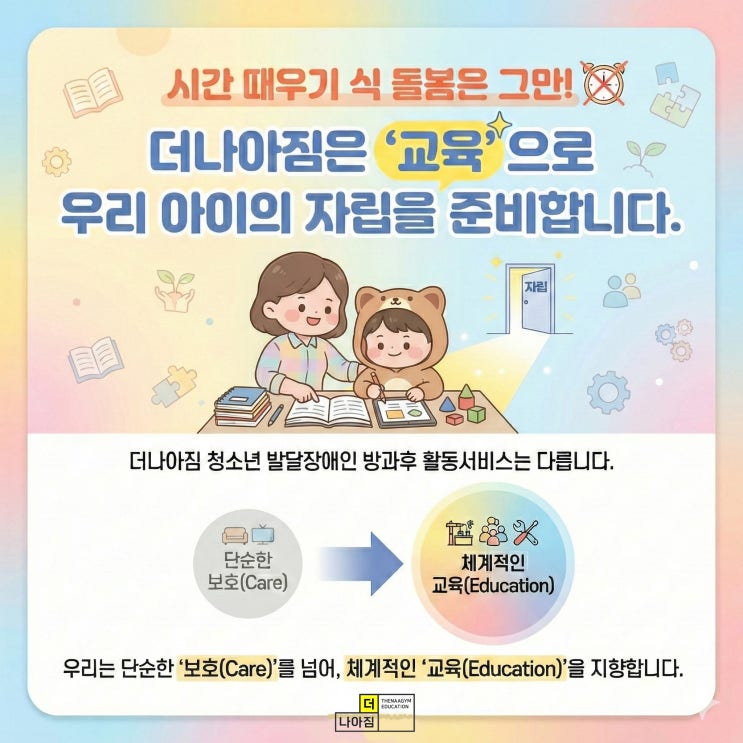 시간 때우기 식 돌봄은 그만! 우리 아이 '자립'을 위한 체계적인 교육, 더나아짐과 함께하세요.