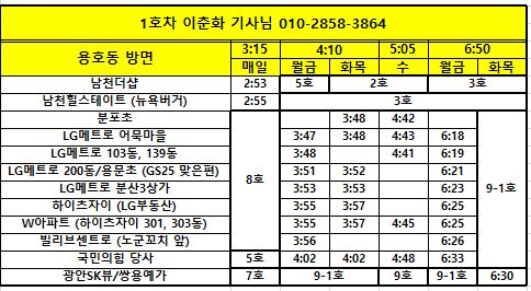 1월 21일부터 적용되는 차량 시간표입니다. 문의: 051)623-5055 <img src="https://blogthumb.pstatic.net/MjAyNjAxMTlfMjM3/MDAxNzY4ODE3ODAxMzU2.I8seUqW4q5u9yb7_xLEr6JzcJ920cdg5DxAYAUeMwgEg.LLCrocp08Ta6gnOI5k4-0B8eLlMuPQgp_R7U-SbUGiYg.JPEG/1..JPG?type=s3" />