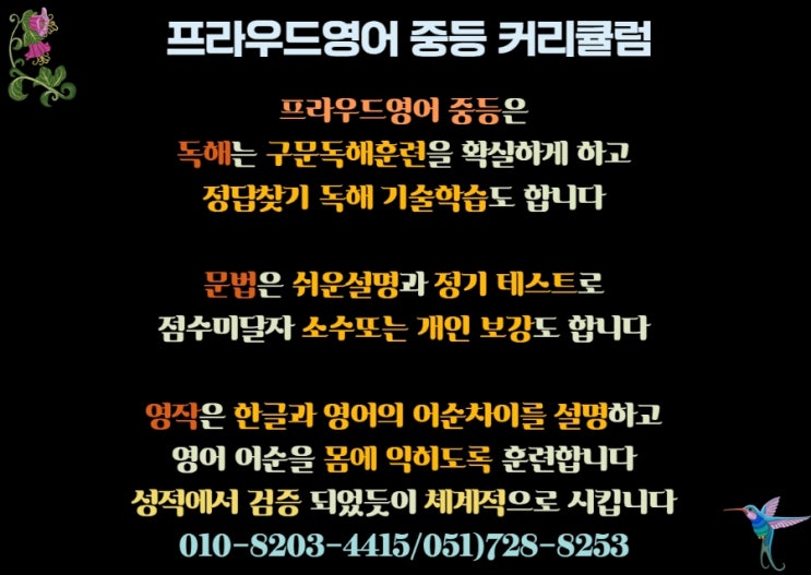 정관 영어학원에서 진행하는 중등 문법 방학특강 이야기