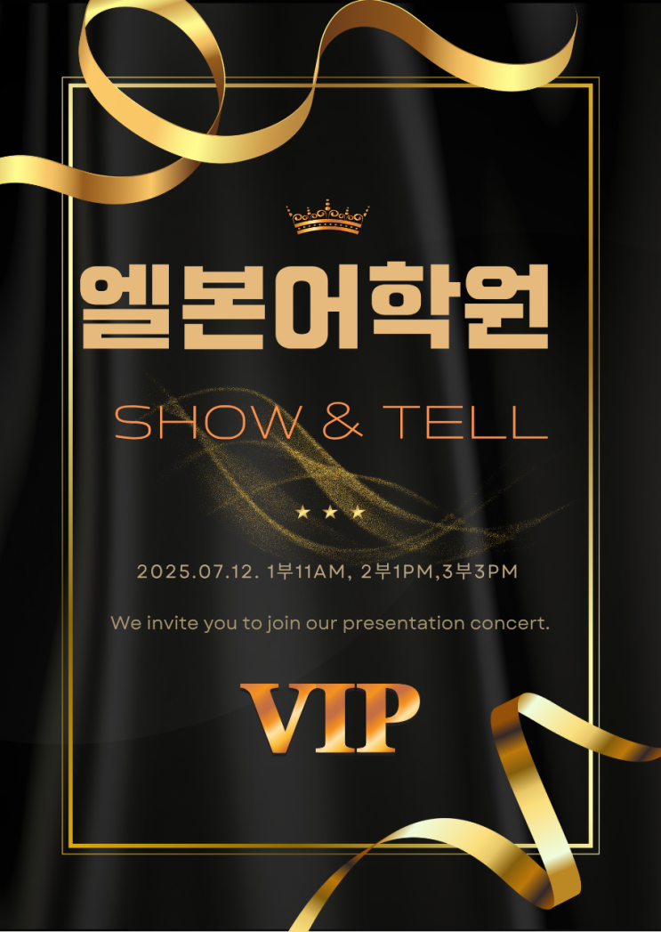 안녕하세요 엘본어학원 원장 리즈입니다^^ 요즘 신학기라 상담과 신규 입회로 바쁜 나날을 보내고 있어 행복합니다~~ 신학기가 되면 학부모님들께서 가장 많이 물어보시는 것 중 하나가 있습니다. “말하기 수업은 실제로 어떻게 진행되나요?” 교재를 잘 풀고 시험 점수가 나오는 건 눈에 보이지만, 영어로 ‘말하는 힘’은 잘 보이지 않기 때문입니다. 그래서 지난 여름 학기, 저희는 Show & Tell 영어 말하기 대회를 열었습니다. 학부모님을 초대해 1부 오전 10시, 2부 낮 12시, 3부 오후 2시 총 세 번에 걸쳐 아이들의 영어 발표를 진행했습니다. 이번 행사는 단순히 엘본어학원 정관 친구들의 결과를 보여주는 자리가 아니었습니다. 아....... <img src="https://blogthumb.pstatic.net/MjAyNjAxMTVfMzEg/MDAxNzY4NDc3NDM1Mjc1.FcIvX9nczW2G_JwN7nfZ_1nlyiTDkRUdg5evq9kZ65Mg.NxlLGdKEp-GZjsumWYwMmH6315zONaTxq7u8CpHJj28g.PNG/900%A3%DF%BA%ED%B7%A2_%B0%F1%B5%E5_%B0%ED%B1%DE%BD%BA%B7%AF%BF%EE_vip_%B8%C9%B9%F6%BD%CA_%C3%CA%B4%EB%C0%E5%A3%DF20250709%A3%DF091528%A3%DF0000.png?type=s3" />