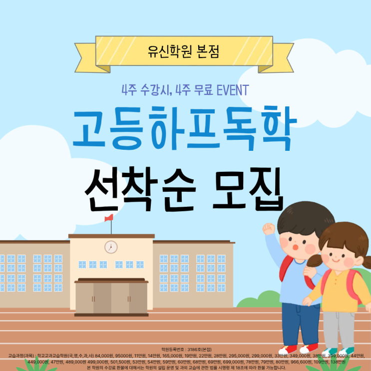 유신학원 본점 고등하프독학 4주+4주 EVENT!!