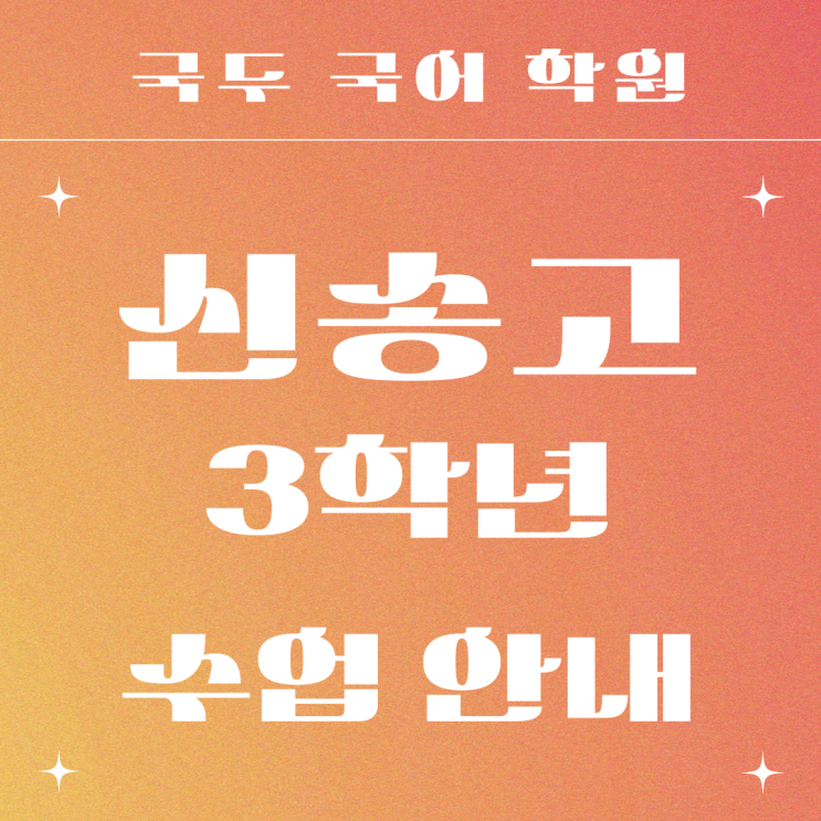 안녕하세요, 국두 국어 학원입니다. 특목 자사 외고 전문 국두 3관에서 신송고 3학년 수업을 안내 드립니다. 특목/자사/외고 전담 국두 3관에서는 많은 학생들이 오랫동안 함께 공부하고 있습니다. 각 학교별로 반을 구성해 전담 선생님들을 배치, 학생들을 국어의 절대 강자로 길러냅니다. 특히 신송고 수업은 소수정예로 진행돼 집중 케어를 받을 수 있는 수업입니다. 국두와 함께라면 국어 실력 향상의 성취감을 느낄 수 있습니다. 학생들과 함께 최고의 결과를 만들겠습니다. ✅ 최상위권 발돋움 맞춤식 수업 ✅ 내신부터 모의고사까지 올인원 커리큘럼 ✅ 특목 자사 외고 전담반 운영 및 전담 선생님 배치 ✅ 자체 교재의 노하우와 풍부한 자....... <img src="https://blogthumb.pstatic.net/MjAyNjAyMTRfMjcg/MDAxNzcxMDM1NjM3ODE2.WCMFiq7pc_H2JFSiOg2RoRb5pFDaJdTojS9Jb4qysm8g.jGqtlDJ8kcYoRTRarNCLyxFQSaarwevtuPdjm3Tdrwwg.PNG/%C1%A6%B8%F1%C0%BB-%C0%D4%B7%C2%C7%D8%C1%D6%BC%BC%BF%E4_-001.png?type=s3" />