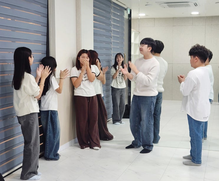 "아이가 사람들 앞에 서면 말이 작아져요." "발표를 시키면 얼굴이 빨개지고 위축돼요." 최근 상담에서 만난 한 아이도 비슷했습니다. 집에서는 잘 놀고 활발한데 막상 사람들 앞에선 뒤로 물러서는거예요. 이럴 때 많은 부모님들이 "말하기 연습부터 시켜야 하나?" 고민하십니다. 그런데 실은 말을 먼저 할 때 오히려 더 위축되는 경우가 많습니다. 왜냐하면 아이에게 필요한 건 스스로 느끼는 자신감이기 때문이에요. 표현이 어려운 아이일수록 말보다 먼저 '몸으로 표현하는 경험'이 필요합니다. 저는 아이들 성향에 맞추어 반을 추천드리는데요, 이 친구들에게 토요일 초등 저학년 반은 연기 + 댄스....... <img src="https://blogthumb.pstatic.net/MjAyNjAzMDVfMjI2/MDAxNzcyNjkzNjc4NDU4.jrxlo_OxcYvKPYWmfK1XLdLdLnP_H8F6tTnn9zr4sOMg.fhow2uxB79FNJt89uRkt95q5lguAElyRZAycRfBmATQg.JPEG/KakaoTalk_20251220_134203043_18.jpg?type=s3" />