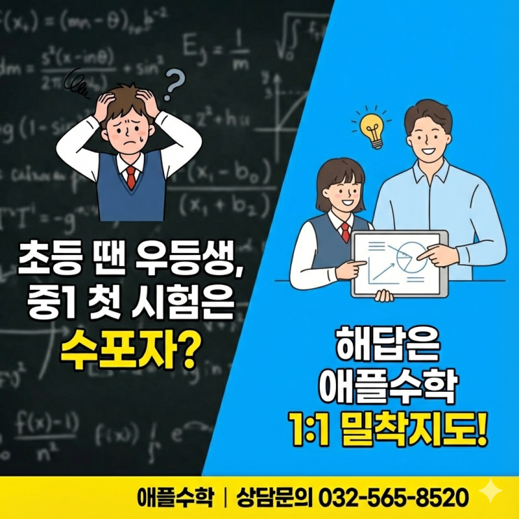 1. 초등 수학은 지금 잘하느냐보다 중학교 가서 안 무너지느냐가 훨씬 중요합니다. 2. 초등은 준비, 중등은 결과로 증명하는 수학학원 : 루원시티 애플수학학원! 3. 가원초 인근위치 , 초등부터 중등까지 이어지는 수학 : 가정동 애플수학학원! ✔ 초등·중등 연계 커리큘럼 ✔ 초등 과정 원장 직접 관리 ✔ 중등 내신 완벽 대비 ✔ 초등 때 개념·사고력 미흡 시 중등에서 즉시 보완 가능 4. 중등 수학 위험도 측정을 위한 무료 진단테스트 진행 중 : (가원초 4~6학년 추천) 선행이 가능한 상태인지 개념 이해에 구멍은 없는지 심화.응용 및 서술형 대비가 되는지 5. “왜 초등을 여기서 해야 하나요?” 실제로 저희는 중등 학생 비율이 초등의 두....... <img src="https://blogthumb.pstatic.net/MjAyNjAxMTNfMjQx/MDAxNzY4MjgxMTY4NzE0.FCH7wvoojrGUM0fxkTiAiZOWlV0EQAVoN-h2eX35Ylog.SvdHC2xRES5FIMIFUmRTsibTGuee6REdyZ38TK3xfnsg.PNG/Gemini_Generated_Image_ipbyx5ipbyx5ipby.png?type=s3" />