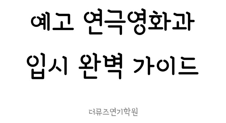 예고 입시 준비생이라면? 예술고등학교(예고) 입시는 대학교 입시에 비해 경쟁률이 비교적 낮고, 체계적으로 준비한다면 비교적 짧은 기간 안에도 도전이 가능한 입시입니다. 특히 어린 학생들은 올바른 방향으로 훈련하면 흡수력이 좋아 실력이 빠르게 성장하는 경우가 많습니다. 다만 예고 진학을 위해서는 연기 실기뿐만 아니라 내신 성적도 중요한 요소입니다. 학교마다 차이는 있지만, 기본적인 내신 관리가 함께 이루어져야 안정적인 지원이 가능합니다. 그래서 예고를 준비하는 학생들은 연습과 더불어 학교 생활 관리 역시 소홀히 하면 안 됩니다. 전기 예술고등학교 연기전공 입시 정리 서울공연예술고등학교(서공예) 학생부....... <img src="https://blogthumb.pstatic.net/MjAyNTEyMThfMjk4/MDAxNzY1OTk2MzA4OTk3.zVdsLeLRgGQ-TNDvyuaROvNcJHSs06gnWHYJnFN9FmUg.XVjG_3LMb7tU-wLz6ql8vxHNKC_EwdpI8H_oo5nNv2Mg.JPEG/%BF%B9%B0%ED%C0%D4%BD%C3_%C1%A6%B8%F1_%C1%F8%C2%A5.jpg?type=s3" />