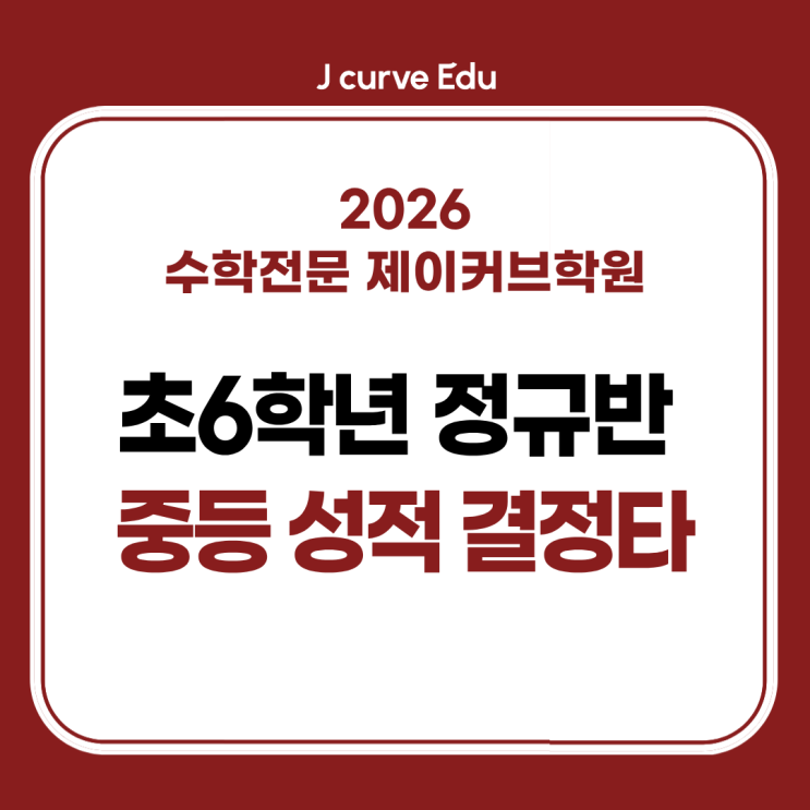 초6 수학, 중학교 성적은 이미 여기서 갈립니다. 안녕하세요? 종로구·서대문구 초등 수학학원 제이커브입니다. 초등학교 6학년은 초등의 마무리가 아니라, 중등 수학의 시작점입니다. 이 시기에 배운 개념이 정리되지 않은 채 중학교에 올라가면, 1학기 중간고사부터 격차가 벌어집니다. 그래서 초6 수학은 “빨리 나가는 것”보다 “정확히 연결하는 것”이 더 중요합니다. 초6 수학, '진도'보다 중요한 것은 '연결'입니다. 제이커브학원 초6 수학은 선행 위주의 수업이 아닙니다. 초등 과정에서 배운 개념이 중학교 과정에서 어떻게 확장되는지까지 이어지는 수업입니다. 분수와 소수 계산은 중1 유리수 연산으로, 비와 비....... <img src="https://blogthumb.pstatic.net/MjAyNjAzMDNfMjg4/MDAxNzcyNTE2NjA3MjQ3.rCU7cfiI92a5JrvPgZeqOOaihC1C8IS5M4zOCkoNL4sg.CHnrQmFtd_tGDieDuvvAF8LSwClO9SfRNrwvSvd4678g.PNG/%C1%A6%B8%F1%C0%BB_%C0%D4%B7%C2%C7%D8%C1%D6%BC%BC%BF%E4..png?type=s3" />