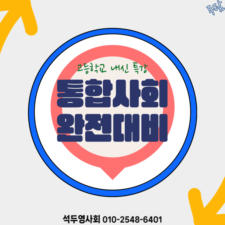 부산사탐 <석두영사회> 해운대사탐 센텀사탐 고1 통합사회 완전대비 #통합사회 수업 안내 방학 동안 개념을 충분히 잡지 못한 학생들의 통합사회 공부를 도와 드립니다. [통합사회] 완전대비 내신 필수 개념 완벽 정리 → 고등학교 내신에 대한 자신감 상승 출제 경향 파악 → 시험 문제에 대한 두려움 감소 취약 영역 극복 → 성적 향상과 장기적 학습 능력 강화 고등학교 통합사회는...개념 이해, 자료 분석, 논리적 사고력이 성적을 결정합니다. 1학년 기본이 잘 다듬어져야 2학년 선택과목과 수능 시험 대비의 실력이 됩니다. 많은 학생들이 “내신은 괜찮겠지?”라고 생각하지만, 성적이 학생부에 반영되고, 이제는 수능 과목으로 선....... <img src="https://blogthumb.pstatic.net/MjAyNjAyMjhfMTY4/MDAxNzcyMjU1NTU3MDQx.oK8v8jvlpx4_Gxf_iAbjIIIPgTSSCLtgxs484UuWhG8g.tXFxTd2yq9FE44qzhSEkRzP3ZrLGXQwMnQeQbyroVSwg.PNG/8673455.png?type=s3" />