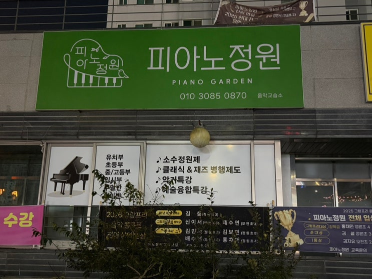 콩쿨 현수막 - 매번 대상 배출 학원으로 성장하고 있습니다❤️ 최근 학원 앞에 콩쿨 입상 현수막을 게시했습니다 아이들이 열심히 준비한 결과를 함께 기념하고 응원하는 마음으로 준비하게 되었습니다. 이번 콩쿨에 참가한 학생들은 모두 좋은 결과를 얻었고 전원 상위 입상이라는 뜻깊은 성과를 이루었습니다. 그중에서는 대상 수상 학생도 배출되어 더욱 의미 있는 시간이었습니다. 대상 수상 학생은 우수자 연주회 참가 기회가 부여되어 피아노정원에서 3명의 아이들이 3월말 우수자 연주 무대에 서게 되었습니다. 콩쿨 이후에도 연주 경험을 이어갈 수 있는 좋은 기회가 되어 아이에게도 뜻깊은 시간이 될 것 같습니다 콩쿨....... <img src="https://blogthumb.pstatic.net/MjAyNjAyMjhfMjI0/MDAxNzcyMjUyNTE1MDA0.8BvPgwL6NqyD3BgTmdRnfAsEm6epOzkjdiZ4Wu8Q97Ag.GJzRiY6czi2XlNOX-LTT5d8cEziWp3lrPm2vjWZhNyUg.JPEG/IMG%A3%DF1961.JPG?type=s3" />