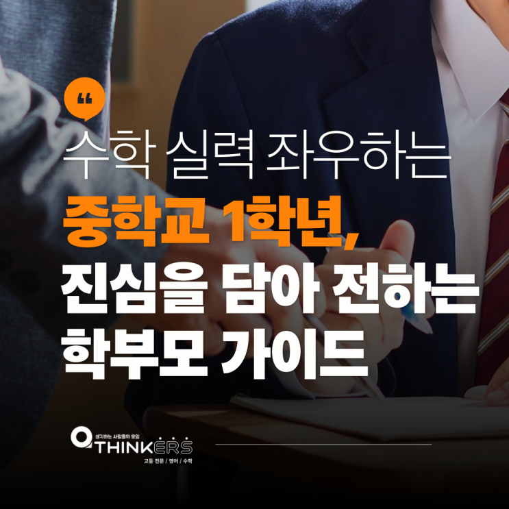 수학,영어 만큼은 자신 있습니다. 길을 아는 사람에게 배우는 첫걸음, 씽커즈학원 안녕하세요. 씽커즈학원입니다. 중학교에 첫발을 내딛은 자녀를 둔 학부모님들께서는 설렘과 걱정이 교차하는 시간을 보내고 계실 것입니다. 초등학교를 졸업하고 새로운 환경에 적응해야 하는 아이를 바라보며, ‘우리 아이가 잘 해낼 수 있을까’ 고민이 많으실 텐데요. 오늘은 중학교 1학년 학부모님들께 수학 선생님으로서 꼭 드리고 싶은 이야기를 전해드리고자 합니다. 특히 자유학년제 속에서 수학 학습을 어떻게 바라보고 준비해야 하는지에 대해 말씀드리겠습니다. 시험 없는 1년, 정말 여유로운 시간일까요? 자녀가 중학교에 입학하면 학부모님들....... <img src="https://blogthumb.pstatic.net/MjAyNjAyMjZfNTIg/MDAxNzcyMDc0MDQxMzI0.s-O0x0UbNvTtIA2fLzNMnlOWXCpOiM8jDW9wtQkbuSUg.BlI800L79TlIcXLkDcmYflM-B-db5CVdHItw-QF1MTEg.PNG/1.png?type=s3" />