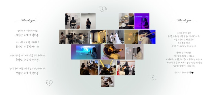 안녕하세요 필뮤직아카데미입니다 :) 2025년 한 해 동안 음악을 좋아하시는 많은 분들과 함께할 수 있어 정말 감사한 한 해였습니다. 여러분 덕분에 학원은 늘 음악으로 가득했습니다. 다가오는 2026년에도 감사함에 보답할 수 있도록 더 체계적인 커리큘럼과 결과로 증명하는 교육으로 모두에게 더 즐겁고 만족도 높은 수업을 제공하는 '필뮤직아카데미'가 되겠습니다. 진심으로 감사드립니다♥ ✔️입시반✔️ ✔️전문반✔️ ✔️취미반✔️ ✔️운영시간✔️ 평일(월~금) Open 13:00 Close 21:30 토요일 Open 13:00 Close 20:00 ✔️학원 위치✔️ ☎010-4676-4491☎ <img src="https://blogthumb.pstatic.net/MjAyNjAyMDRfNTgg/MDAxNzcwMTg0ODUzMTgw.xPX6LlqGG8Wz2L6xYWyxbuq9EOnJLjKf6N64aayyuXYg.y9zMnThspTN7VDAwKrmQendDdtBow9agBDD0NbnqFMog.JPEG/%C0%FC%C3%BC.jpg?type=s3" />