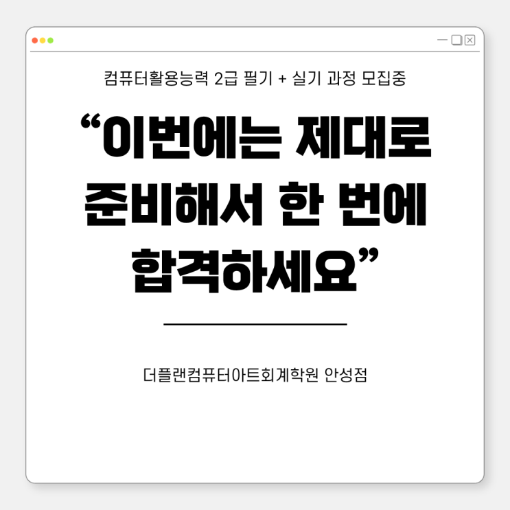 컴퓨터활용능력 2급 필기 + 실기 과정 모집중