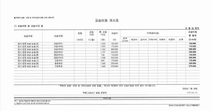 [공지] 개신 책나무 국어의훈련 학원 교습비