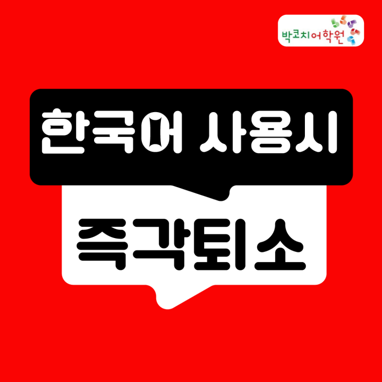 안녕하세요. 박코치어학원은 학원에 들어선 순간부터 가슴에 훅 파고드는 문장들이 있습니다! 강의실, 복도, 화장실 등 학원 내 그 어느곳에서도 영어로만 말해야 하는 조항이 있는데요! 한국어 사용 적발시 즉각 퇴소조치라니... 정말 대단하면서도 신기하고 꿈을 심어주는 조항이 아닌가 싶습니다.^^ 이런 퇴소조항 당황스럽나요? 저는 이 조항을 보고 속으로 박수를 쳤답니다. 소용없는 조항이 아닌 진정 변화를 일으켜줄 조항이라고 생각합니다. '영어스피킹'의 진정 독보적인 교육기관임을 자부합니다. 앞으로 더욱 더 기대를 해주셔도 됩니다. 200% 영어 사용 환경이 혹시 두려우신가요? 걱정 마세요. 왕초보라도 성장의 성장을....... <img src="https://blogthumb.pstatic.net/MjAyNjAzMDVfMjYx/MDAxNzcyNzE1MTU3NzUw.WZ3JfGU69bdHSSeIxlfxgo4VgKDqlb2BKRr174uW3jkg.kgIiMVz-HvMzRFFBCl9D6-dibDoMUEVlkqk2rh3VpyEg.PNG/%B0%AD%B3%B2%BF%B5%BE%EE%C7%D0%BF%F8%C3%DF%C3%B5_1.png?type=s3" />