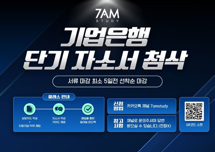 2026 상반기 IBK기업은행 자소서 항목 자기소개서 첨삭 클래스 OPEN! |7am 스터디