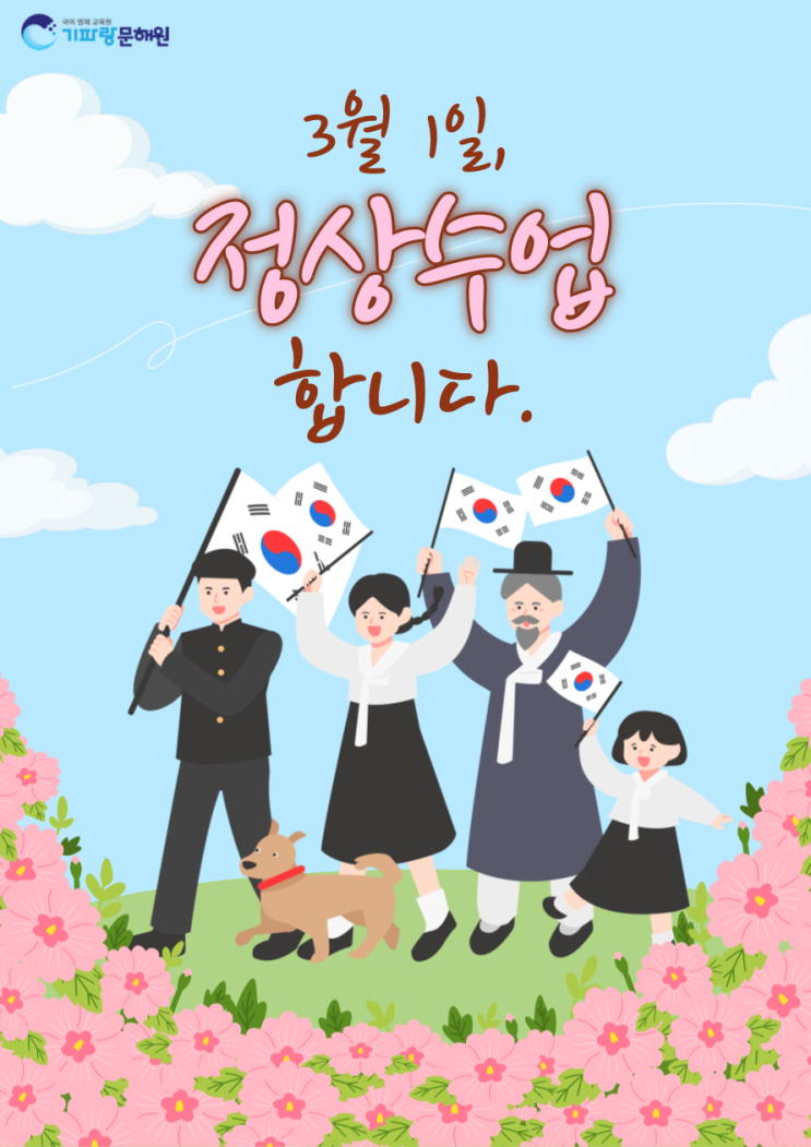 [수지국어학원] [기파랑문해원] <초등><중등> 2026년 삼일절(3월 1일 (일)) 정상수업 안내