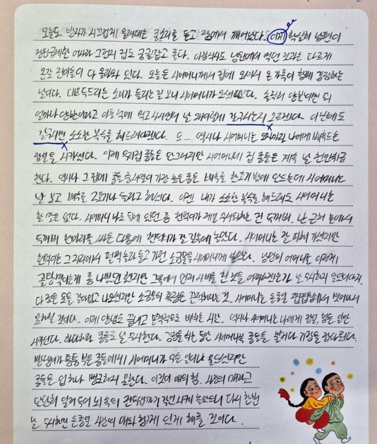 ㅇ준이의 글은 언제나 자기 색깔이 분명합니다. 특히 주어진 틀이 없을 때 ㅇ준이다움은 빛을 발하지요. 첨삭을 하다 혼자 읽기 아까워서 통통 튀는 이야기 꾼의 작품을 공개합니다. "이 녀석, 내가 언제 이렇게 쓰라고 했니? 그런데 네 덕분에 배꼽 잡았다." <img src="https://blogthumb.pstatic.net/MjAyNTEyMTJfNzEg/MDAxNzY1NTIzNTc1MDYw.-ufgWqs1LAQcMfU-oOo78Jt-gO1PP74JYuQ8iApNdBUg.5i479amNbSVELsKCD3vZMDsAII-5KNK_lc95b0xzLJog.JPEG/900%A3%DF1765523574263.jpg?type=s3" />