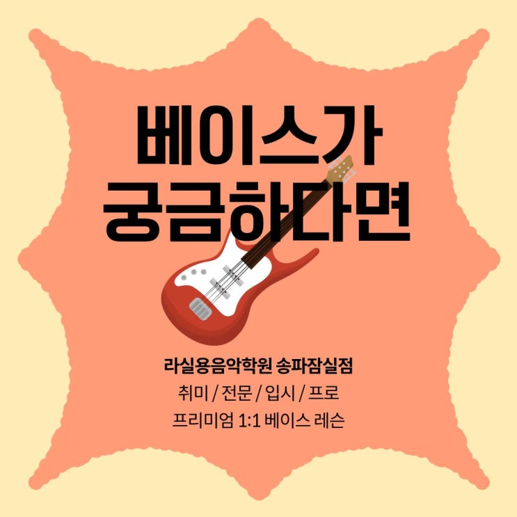 안녕하세요! '오직 학생 중심' 을 핵심 가치로 올바른 음악 교육을 선도하는 라실용음악학원 송파잠실점입니다 :) 밴드 음악의 새로운 전성기인 요즘! 밴드 사운드에 흥미를 가지고 계신 분들이 많으실 텐데요. 베이스는 밴드의 중심을 잡아주는 아주 중요한 악기입니다! 딱 한 음만 정확히 쳐도 음악의 풍부함이 달라지고, 리듬이 살아나죠! 이렇게 중요한 베이스를 제대로 배우기 위해서는 '나에게 맞는 방식으로 배우는 것'이 정말 중요하답니다 저희 라실용음악학원 송파잠실점의 베이스 레슨은 정해진 커리큘럼을 기계적으로 따라가는 방식이 아니에요! 기초 실력, 원하는 음악 스타일, 목표, 그리고 연습할 수 있....... <img src="https://blogthumb.pstatic.net/MjAyNTExMjdfNjkg/MDAxNzY0MjM5MjU1ODY1.nXOXfjvyQ8eWcLn3Txl3Q2E6p-52hWeZTtOs0CNGVAEg.UUPR_1WUREGJfnIHJUJqp3MMx8F3Rt1sEB1P2J2XA8og.JPEG/1.jpg?type=s3" />