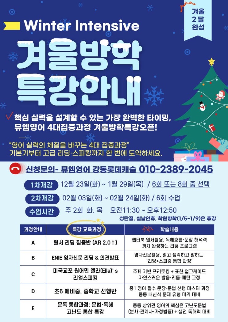 ❄️ Winter Intensive 뮤엠 강동롯데캐슬캠퍼스의 4대 집중과정 겨울방학특강 오픈!