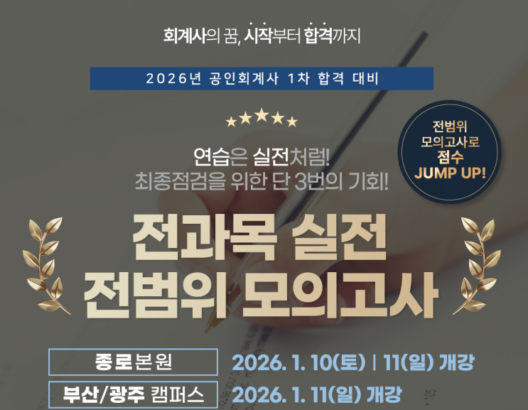 [부산 나무경영아카데미] 26년 회계사1차대비 전범위실전 모의고사 3회 1/11(일)개강