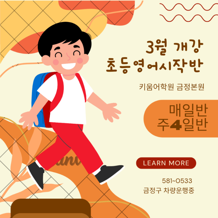 안녕하세요 초등영어 전문 키움어학원 금정본원입니다. 우리 아이들 새학기에는 영어학원을 보내기로 계획중이신가요? 금양초 근처 어린이영어 전문학원을 찾고 계신가요? 그렇다면 키움어학원 금정본원입니다 ♡♡♡ 알파벳과 파닉스 영어그림책 영어회화 영어게임과 챈트 ♡얼리버드 특전♡ 2월13일까지 3월 선등록시 2만원 3월교습비에서 할인적용 금양초 친구들 모여랏 ♡♡♡ 금양초 정문에서 안전하게 차량픽업 체계적이고 전문적인 어학원 커리큘럼 이미 많은 금양초 친구들의 입소문이^^ 감사합니다 금양초 영어학원 부산 금양초영어 금양초 차량학원 금양초 어학원 키움어학원 금정본원 <img src="https://blogthumb.pstatic.net/MjAyNjAxMTZfMjkw/MDAxNzY4NTA1MDU3MDQy.YEgin-_ezALLf5fBtV0gwMOogXXpIJagbms2f_45KBkg.5hoRvAFTOQkpOHSkQ2bXrI9AJJrlpzHw6AxNwu8Lr88g.PNG/900%A3%DFOrange_and_Brown_Minimalist_School_Admission_Facebook_Post%A3%DF20260116%A3%DF0419.png?type=s3" />