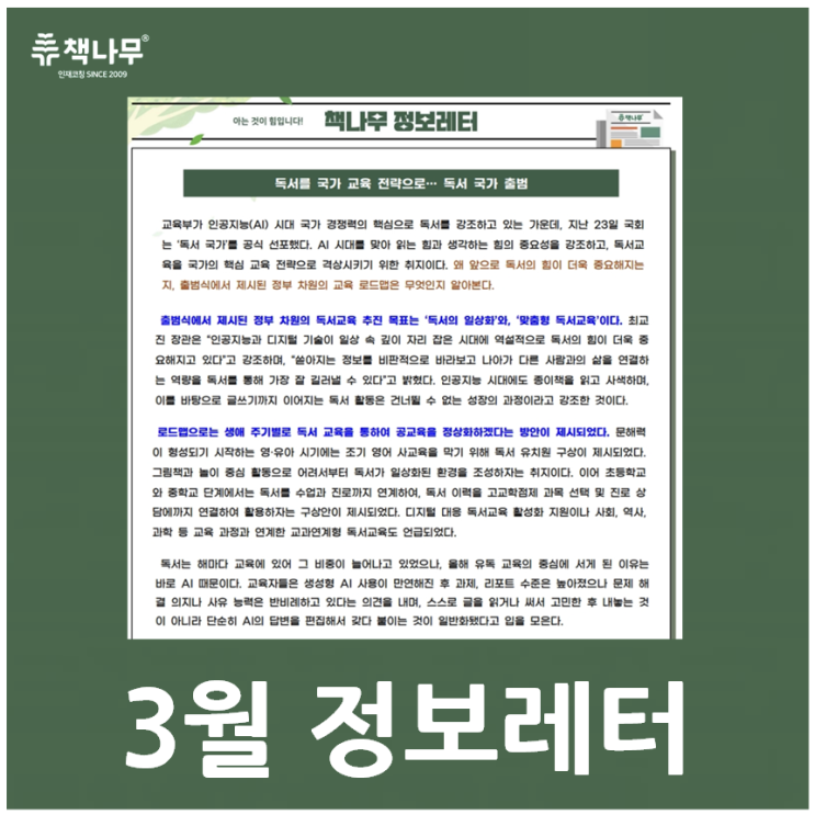 본리동 책나무 <3월 정보레터> - 독서 국가 출범 (본리초등글쓰기)