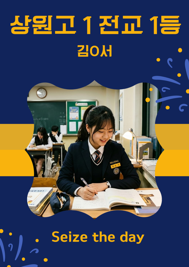 안녕하세요, 씨즈더데이학원입니다. 오늘은 정말 기쁘고 자랑스러운 소식을 전해드리려고 합니다. 씨즈더데이학원의 장기수강생인 상원고 1학년 학생이 전교 1등을 달성했습니다. 오랫동안 꾸준히 학원을 믿고 함께해 온 학생이기에 이번 결과가 더욱 뜻깊고 감동적으로 느껴집니다. 특히 영어는 단순히 시험 직전에 암기해서 좋은 결과를 얻기 어려운 과목입니다. 평소의 꾸준한 학습 습관, 탄탄한 개념 정리, 반복적인 점검과 피드백이 쌓여야 안정적인 실력으로 이어질 수 있습니다. 씨즈더데이학원은 단기간 성적 향상만을 목표로 하기보다, 학생이 오랜 시간 흔들리지 않고 실력을 쌓아갈 수 있도록 기초부터 꼼꼼히 관리하고, 내신과 실전....... <img src="https://blogthumb.pstatic.net/MjAyNjAzMDZfOTQg/MDAxNzcyNzc1MjQyMzU3.rzx7wd6W5DO_tp6n6eRX9KEGugAMs1k8k0XcZpta1Wog.P0RReRAPAjYPtNV6T4bKFj2iL7FVV7v76SuQKw4UCXcg.PNG/Blue_University_School_Students_Graduation_Congrats_Poster.png?type=s3" />