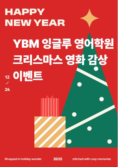 안녕하세요. 와이비엠 잉글루 영어학원입니다 벌써 다음 주면 크리스마스가 다가와요~ 한 해 동안 열심히 학원에 다니며 공부해준 잉글루 학생들과 즐거운 추억을 하나 더 만들고 싶어서 이번 크리스마스 이브에 학원에서 작은 이벤트를 준비했어요. 이날은 평소 수업 대신, 편안한 분위기에서 함께 크리스마스 영화를 감상할 예정이에요. 2주 전부터 아이들에게 미리 공지를 했더니 벌써부터 “선생님, 어떤 영화 볼 거예요?” 하며 설레는 반응을 보여주고 있어요 맛있는 간식과 함께하는 크리스마스 영화 감상! 생각만 해도 아이들에게는 즐거운 추억으로 남을 것 같아요. 이번 이벤트는 한 해 동안 수업에 성실하게 참여해준 아이들이 조금은....... <img src="https://blogthumb.pstatic.net/MjAyNTEyMThfNiAg/MDAxNzY2MDQ4MDA2OTQy.pcfiXiTOmHldwi0vkpx5SrSVbcEzIDGEN0CGlvr_fasg.pOlHxu0gRVoR2eLg0XH9AQtemfED63KB1ocihUR7hGgg.JPEG/%C8%AD%B8%E9_%C4%B8%C3%B3_2025-12-18_175306.jpg?type=s3" />