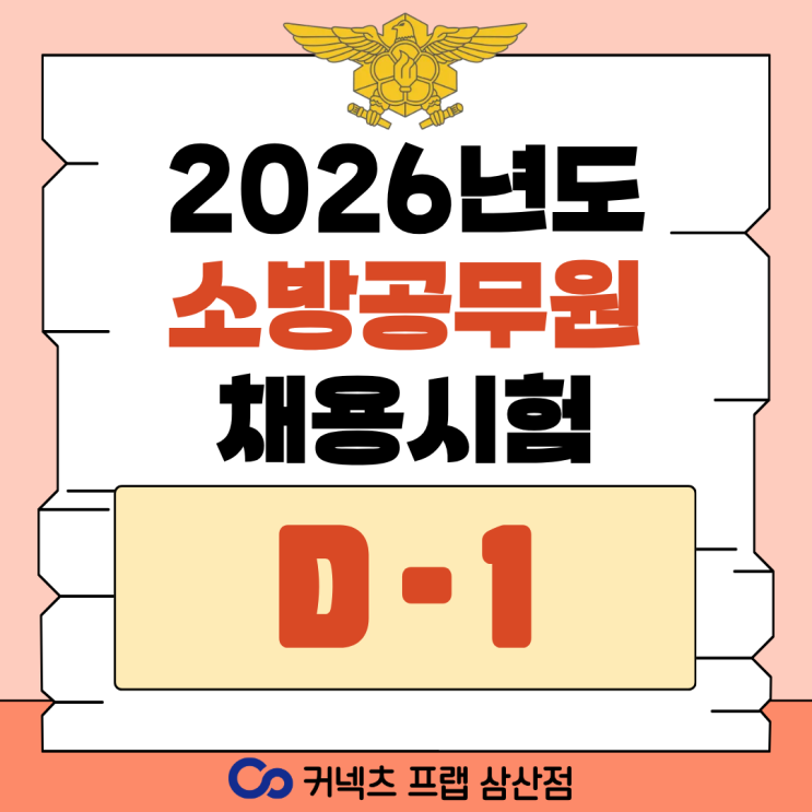 안녕하세요! 커넥츠 프랩 삼산점 입니다. 2026년도 소방공무원 채용시험을 하루 앞두고 있습니다. 지금까지 쉬지않고 시험준비 해왔을 수험생 여러분 정말 고생 많으셨습니다. 커넥츠 프랩 삼산점에도 소방직 준비 수험생분들이 있습니다. 응원하는 마음으로 합격기원 선물을 전달 했어요! 시험 전 날인 만큼 컨디션 조절 잘 하시고, 마지막까지 노력한 만큼 좋은결과 받으시길 바라겠습니다. 삼산점 052-700-2112 신정점 052-700-2115 무거점 052-707-2112 태화우정점 052-700-2118 <img src="https://blogthumb.pstatic.net/MjAyNjAzMDZfMTY1/MDAxNzcyNzc1NzM3MzAy.69nPf0qKg4brEi0EFbOvN6m7jaf6GL389_PfGw4laBwg.7VUeKzGqBWtm6pqQxaAgXTHplqQ72XnD11URBcjukgMg.PNG/%C1%A6%B8%F1%C0%BB_%C0%D4%B7%C2%C7%D8%C1%D6%BC%BC%BF%E4._%2842%29.png?type=s3" />