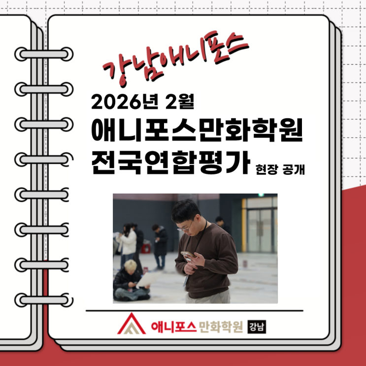 안녕하세요. 강남애니포스입니다. 강남애니포스를 비롯한 애니포스만화학원 전국 캠퍼스가 함께한 2026년 애니포스 전국연합평가 현장 소식을 전해드립니다. 이번 전국연합모의고사는 애니입시와 게임입시 등을 준비하는 학생들에게 현재 위치를 객관적으로 확인하고, 앞으로의 입시 전략을 구체화하는 중요한 계기가 되었습니다. 특히 강남애니포스 등 각 캠퍼스 학생들의 실력을 점검해보고 앞으로의 입시 전략을 구상해볼 수 있는 의미 있는 시간이었습니다. <2026년 애니포스 전국연합평가 포스터> 이번 애니포스 전국연합모의고사 평가는 SETEC 제2전시실과 컨벤션센터 세미나3실에서 오전부터 체계적으로 진행되었습니다. <2026년....... <img src="https://blogthumb.pstatic.net/MjAyNjAyMTlfMjg0/MDAxNzcxNDcwNTk2NjUx.R68sGRxKdCTdkBWqVc1YoyXvFuvjvyb9aPVRDSjZRvkg.iEz2_bC8St6HWz8btqcAFoKxlV-U8Q9ydqU_aiTxUkMg.PNG/%B0%AD%B3%B2%BA%ED%B7%CE%B1%D7_%BE%D6%B4%CF%C6%F7%BD%BA%C7%E0%BB%E7_%C7%A5%C1%F6.png?type=s3" />