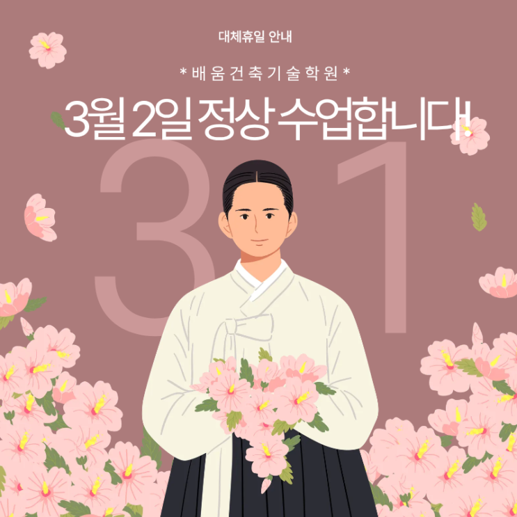3월 2일 월요일 정상수업합니다! 3월 2일 월요일 대체휴일에 건축도장기능사 수업은 정상으로 진행됩니다! (2월 28일 토요일도 정상수업) 수업참여 원하시는 분들은 꼭 미리 예약해주세요! ◆예약문의◆ 02.356.6778 010.7183.7888 #건축도장기능사학원 #방수기능사학원 #서울건축도장기능사 #서울방수기능사 <img src="https://blogthumb.pstatic.net/MjAyNjAyMjdfMjI2/MDAxNzcyMTUxNDUyODEx.apNtOJMcEC7tEu-ZBOivlaqFeG6ekUmqDYZt7X81Fq4g.IivLmsG4zgx51GtI_5QujoQ1qssIV7_YsypmqkBSiWgg.PNG/%C1%A6%B8%F1%C0%BB_%C0%D4%B7%C2%C7%D8%C1%D6%BC%BC%BF%E4..png?type=s3" />