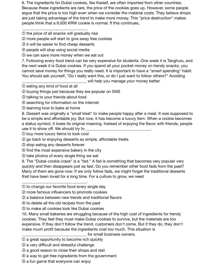 중등고등영어빈칸문제, 두바이쫀득쿠키, 문제만