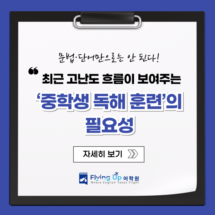 [불당.신부.차암.불무.두정 영어학원] 문법·단어만으로는 안 된다! 최근 고난도 흐름이 보여주는 ‘중학생 독해 훈련’의 필요성