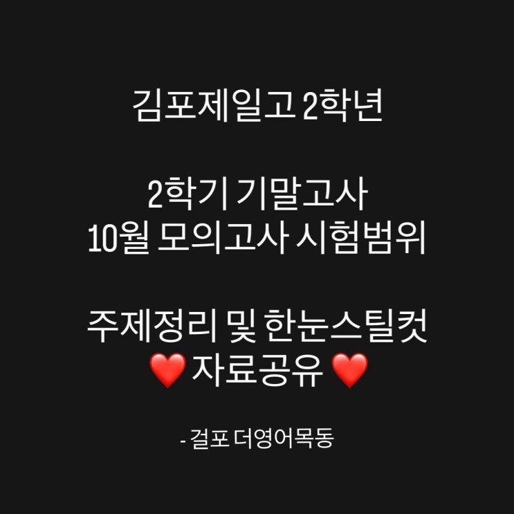 김포제일고 2학년 영어 기말고사 모의고사 시험범위 : 주제정리 및 한눈스틸컷 자료공유 / 걸포동 영어학원, 더영어목동