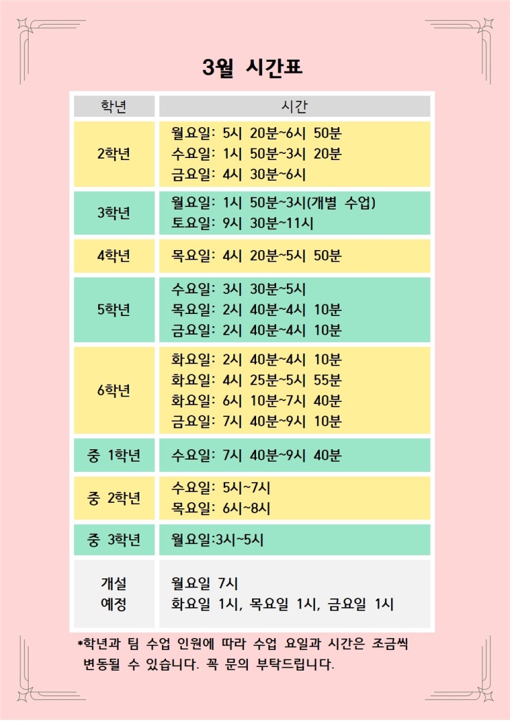 3월 시간표