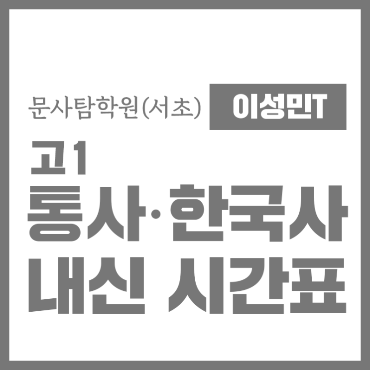 문사탐학원(서초동) 이성민T 2026 고1 1학기 중간 - 개정 통사 / 한국사 내신 시간표 - 상문고, 서울고 등 이성민T 문사탐학원 전속 강사 25~26 자이스토리 검수진 수강 예약/상담 - 문사탐학원 서초 : 02-594-6901, 010-7255-6905(문자 및 카톡 상담 가능) ▶︎ 고1 통사 + 한국사 / 고2~고3 사탐 내신 : 상문고/서울고/반포고/서초고/세화고/양재고 등의 내신, 팀 수업 등은 유선상 문의 부탁드립니다 [통합사회] 차별화된 소수 정예 수업을 통해 학생별 학습 스타일에 맞는 개별화된 학습을 제공합니다. 통합사회는 쉬운 교과서와 달리, 내신은 학습지, 기출 등을 통해 변별력을 높이므로 철저한 대비가 필요합니다. 또한 심화 문제인 수능형....... <img src="https://blogthumb.pstatic.net/MjAyNjAyMTBfMjY3/MDAxNzcwNzE0NjI4NTg5.We9K3VwmzSzWzvoyrq1pQ1LZinlY2Lr7QPWHmJ1DyDMg.kdNHQwMvzq_mgJB0aHpCZgMwlFuAsJPgJIRZGbOWJfMg.PNG/MST_blog_thumb-LSM.png?type=s3" />