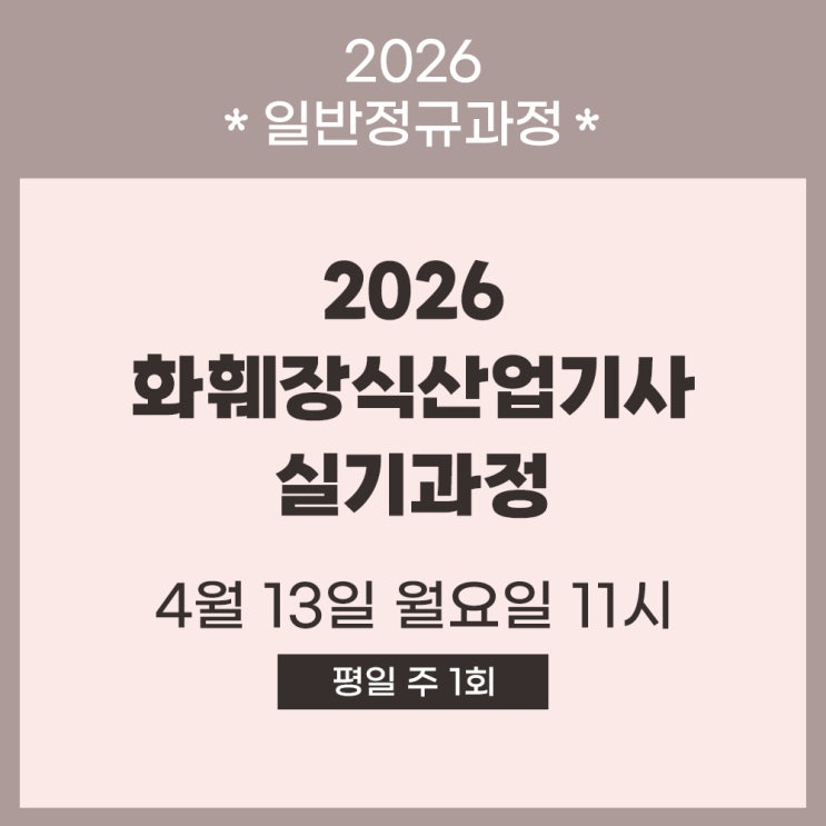 [ 일반과정 ] 안녕하세요! 홍대 신촌 서울 플로리스트학원 지오지오 플로리스트 학원입니다. 화훼장식산업기사 국가자격증 실기반 개강 안내입니다. 화훼장식산업기사는 1년에 1회 시험을 치르게 됩니다. 본 과정은 2026년 7월에 실시하는 실기시험에 대비하는 수업과정입니다. 자세한 시험일정은 아래 표를 참고해주세요. 2026 화훼장식산업기사 시험일정 *원서접수시간은 원서접수 첫날 10:00부터 마지막 날 18:00까지임 화훼장식 산업기사 응시자격 * 관련 학과 4년제 대학교 이상의 학교에 개설되어 있는 원예학과, 화훼원예학과, 화훼디자인과, 화훼장식과 등 * 유사 직무 분야 경영·회계·사무 중 생산관리, 건설, 광업 자원, 안전 관리, 환....... <img src="https://blogthumb.pstatic.net/MjAyNjAyMTJfMzcg/MDAxNzcwODkwMTA2MTk1.xSJmV9E5gQt5K_5mTn3x4ZgNothNsTO-EQaSCn4td7Ig.Fb9y1Pi6zcY0j1hE8RxO9aZlBGAWef2uwpYgw-aiUIUg.JPEG/123123.jpg?type=s3" />