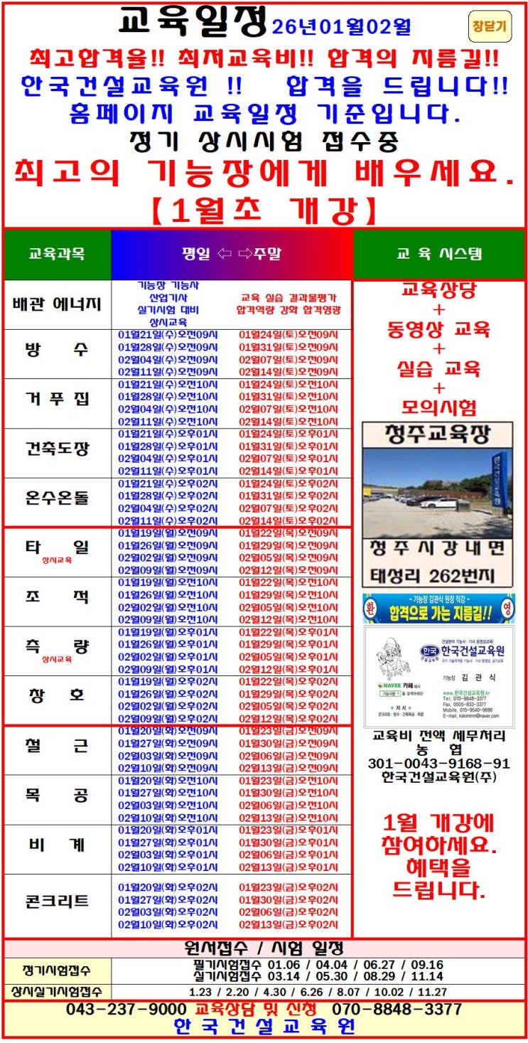 교육일정을 올립니다. 자세한 사항은 교육 상담 전화주세요. <img src="https://blogthumb.pstatic.net/MjAyNjAxMjNfMTk3/MDAxNzY5MTM2OTMwOTY3.Gko8PVUtpnTMpg4W1rcYT11PopvlfVYhFIXj2SX4NRIg.FR4Hp4HX9TF5LxlNTv6-9oDgFRsZpfuM3uWO0Y7BhS8g.JPEG/26%B3%E2%B5%B5%B1%B3%C0%B0%C0%CF%C0%DA02%BF%F9001.jpg?type=s3" />