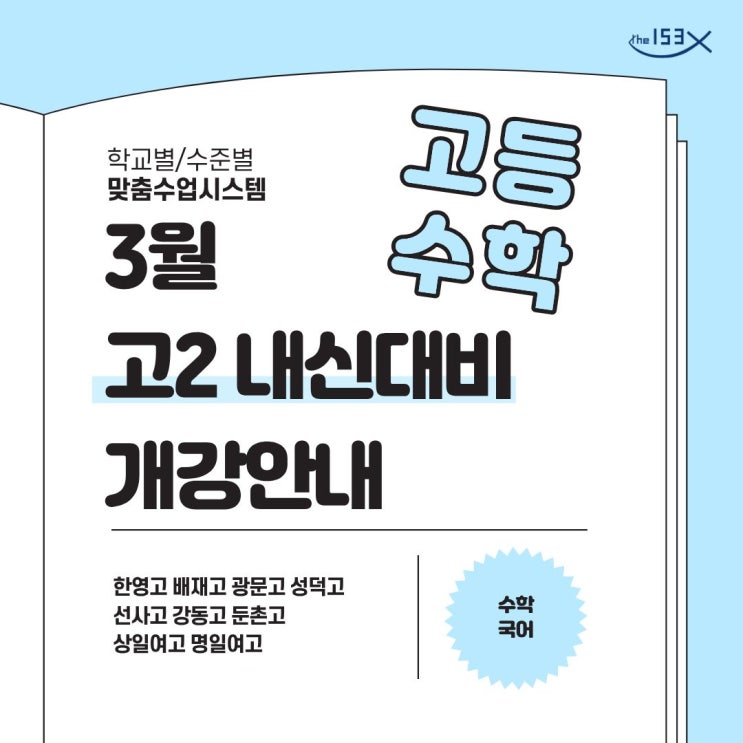 안녕하세요. 수학전문가 153 학원입니다. 고2 중간고사 대비 수학 시간표 안내드립니다. 내신은 관리가 중요합니다. 학원의 이름이 아닌 강사들의 능력으로 성장한 저희 학원에서는 내신 1등급을 위해 철저한 관리와 완벽한 개념 및 문제훈련을 통해 최선의 노력을 다하겠습니다. 감사합니다. <img src="https://blogthumb.pstatic.net/MjAyNjAyMjZfMTA4/MDAxNzcyMTA4Njc5NTM2.sk9rQKFvlxh3NRA532WO0IDpda8h7I1ta1phvy-DOQ4g.2GarhShwwyfD0jNNdpWx5aIvrToN_kVqqmYLsNLNGwwg.JPEG/%B0%ED2.jpg?type=s3" />